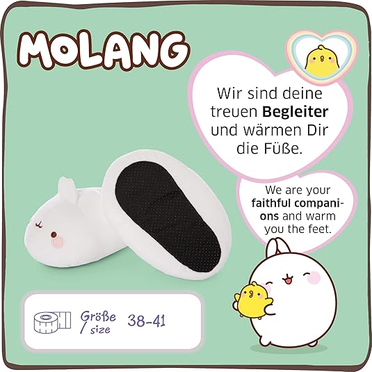 - DOUCEUR CÂLINE : Avec ces pantoufles en peluche, vos pieds seront toujours bien au chaud, même durant les froides journées d'hiver, car Molang, le lapin câlinou avec ses petites oreilles et sa fourrure douce, vous réchauffera