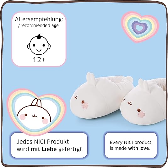 - NICI Chaussons peluches Molang le lapin Taille 38-41 (L) – Chauds, moelleux, chausson en peluche avec semelles antidérapantes pour garçons, filles, adultes – Pantoufles peluches lapins – Blanc